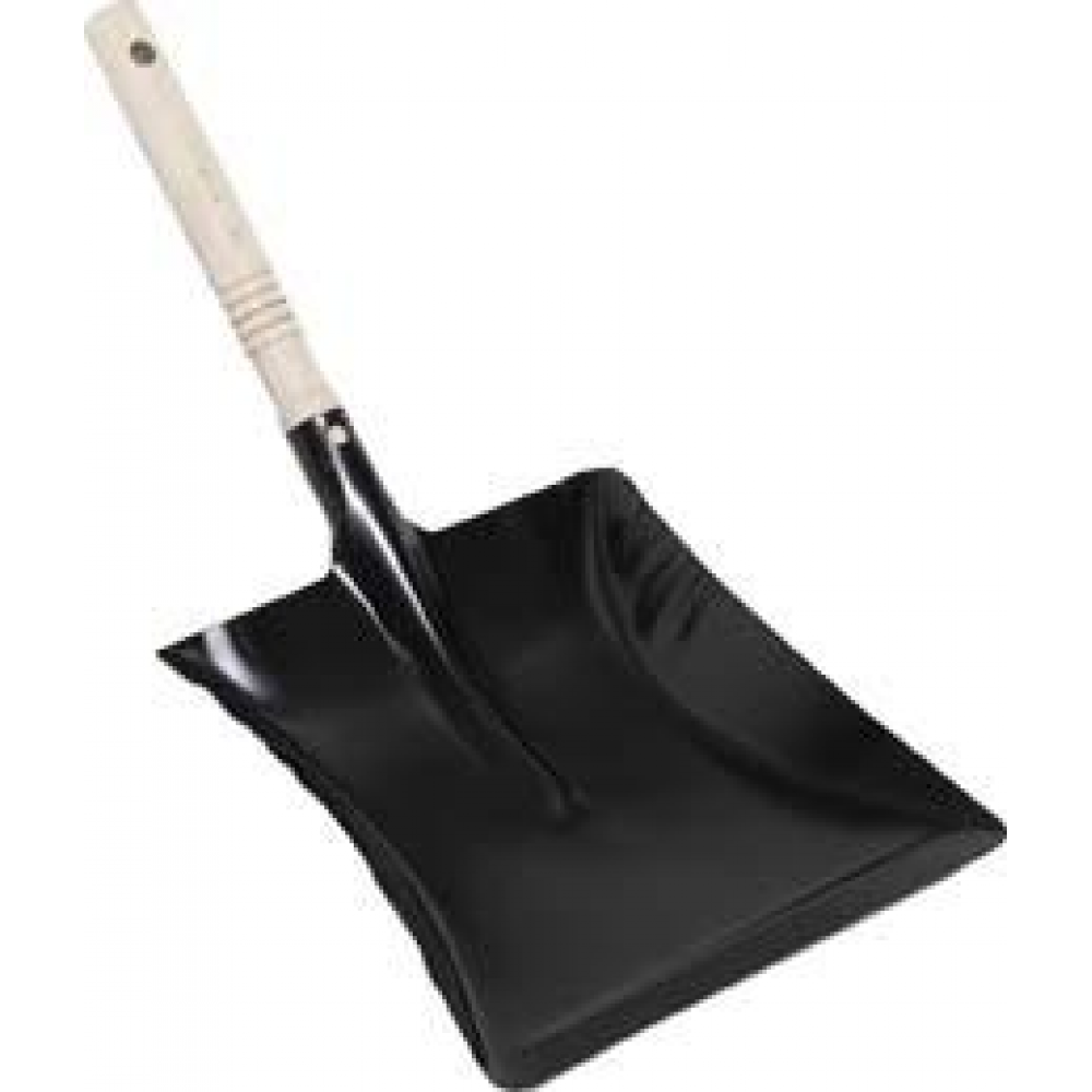 Szufelka do zamiatania, metalowa, lakierowana, z uchwytem drewnianym