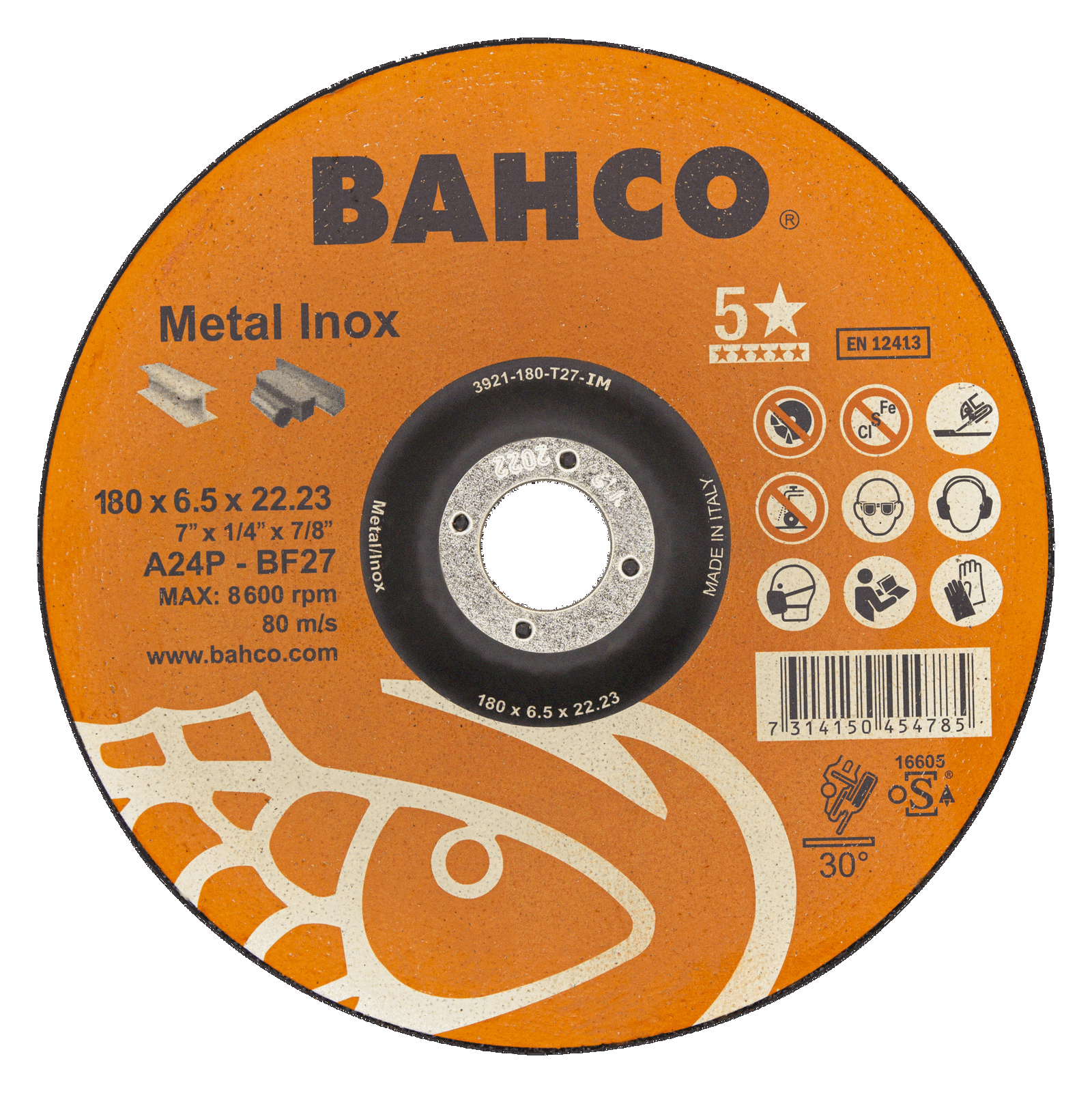 Tarcza do szlifowania metalu i Inox 230mm x 6.5mm BAHCO (25 szt.)