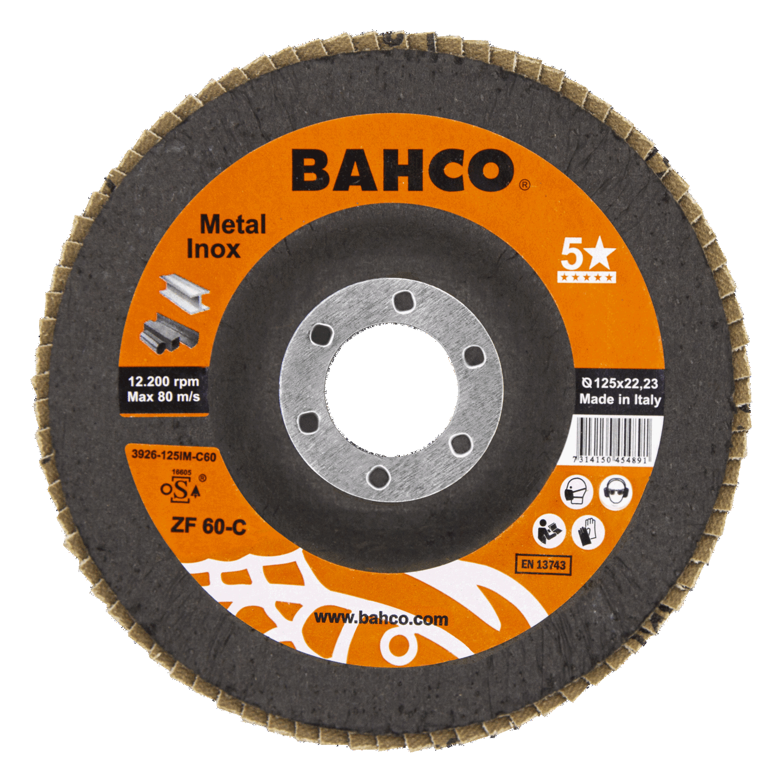 Tarcza lamelkowa płaska 125mm P60 do metalu i Inox BAHCO (20 szt.)