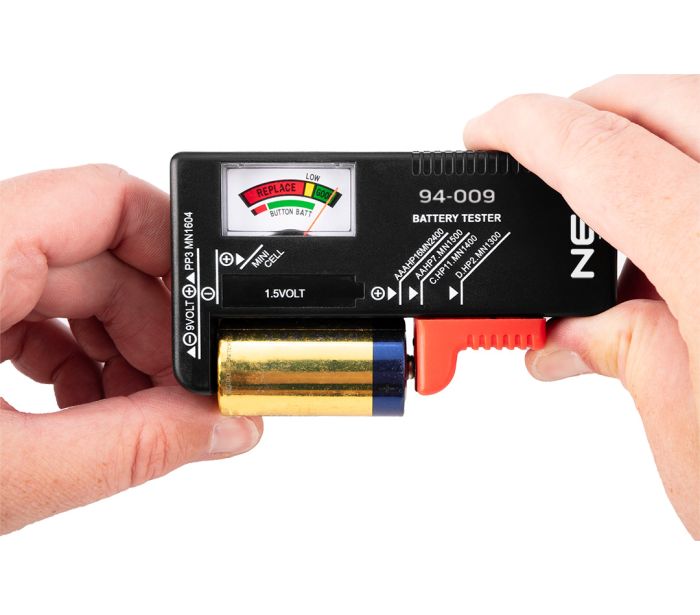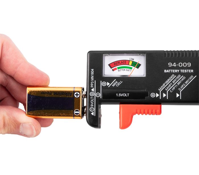 Przeznaczony to testowania baterii: aa (r6), aaa (r3), r14 , r20, cr 1.5v, 9v (r9)