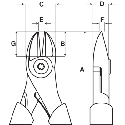 - Krawędź progresywna: promień cięcia przebiega wzdłuż krawędzi w celu cięcia twardego materiału, jak drutu fortepianowy częścią bliżej złącza i miękkich materiałów, takich jak miedź i tworzywa sztuczne częścią bliżej końca szczęk