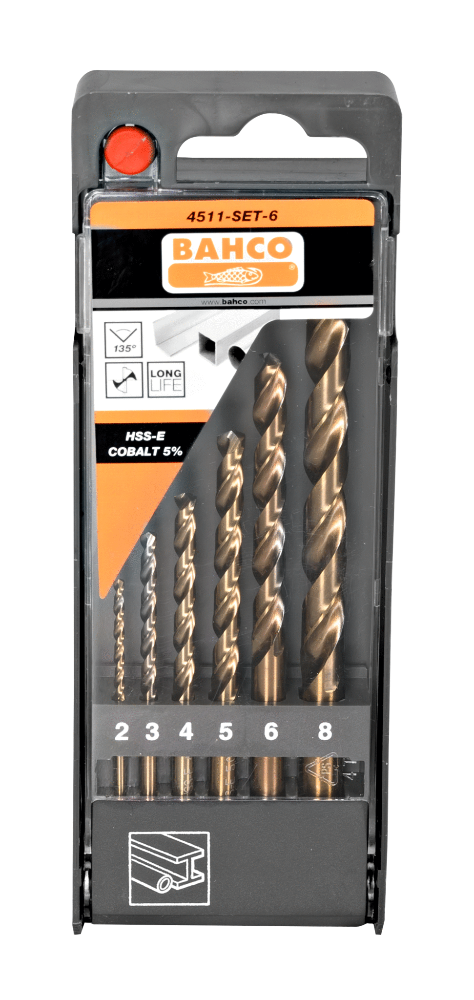 Wiertła kobaltowe HSS-E do metalu 6 szt. w zestawie 2-3-4-5-6-8 mm BAHCO
