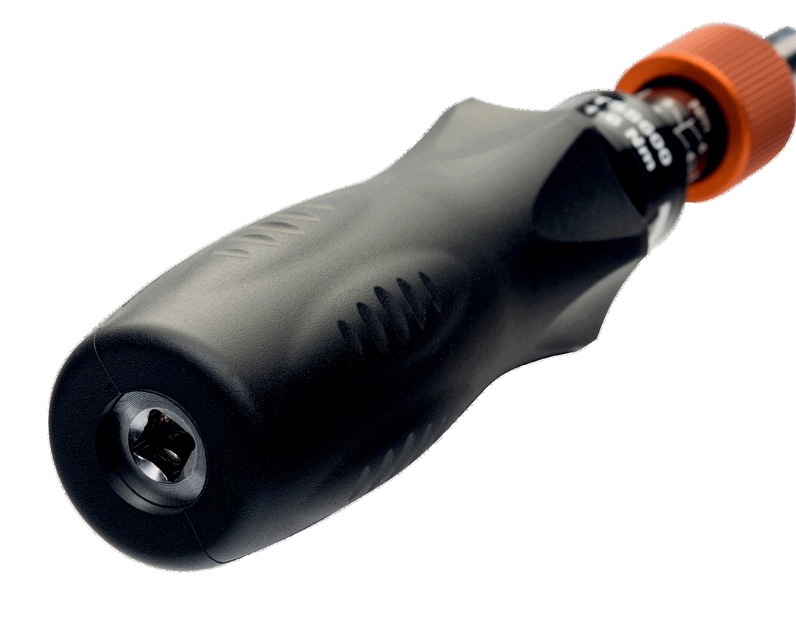 - Trójpłaszczyznowa gumowa rękojeść z dodatkowym otworem z góry na zabierak kwadratowy 1/4″ – pod pracę z pokrętłem typu T