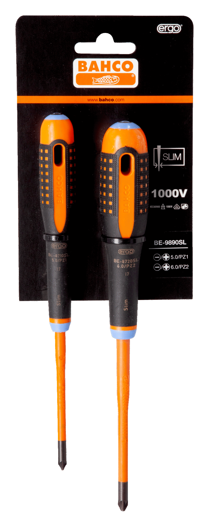 Wkrętak izolowany ERGO™, 2szt., do śrub kombinowanych prostych/Pozidriv BAHCO