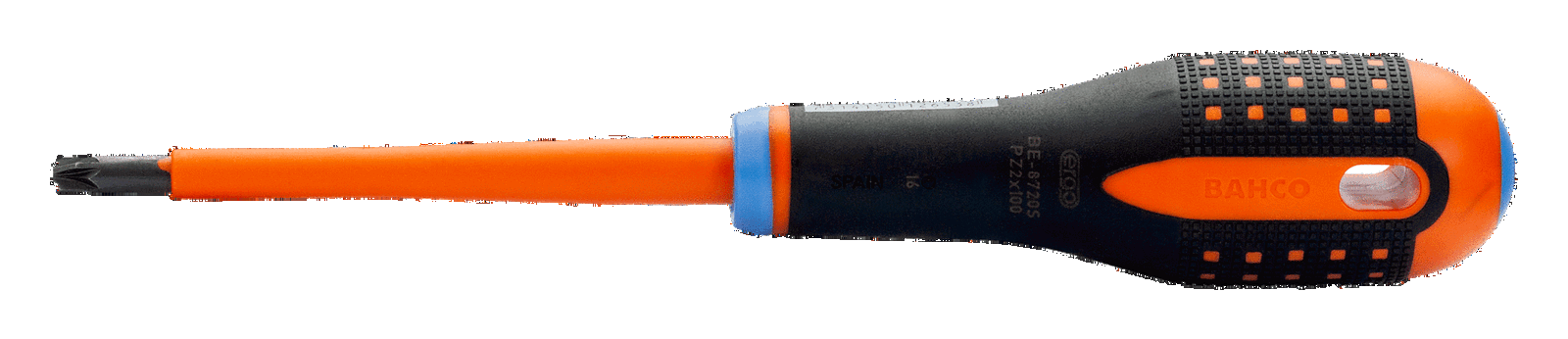 - Wkrętak izolowany do śrub prostych i Pozidriv zaprojektowany zgodnie z naukową koncepcją narzędzi ERGO™