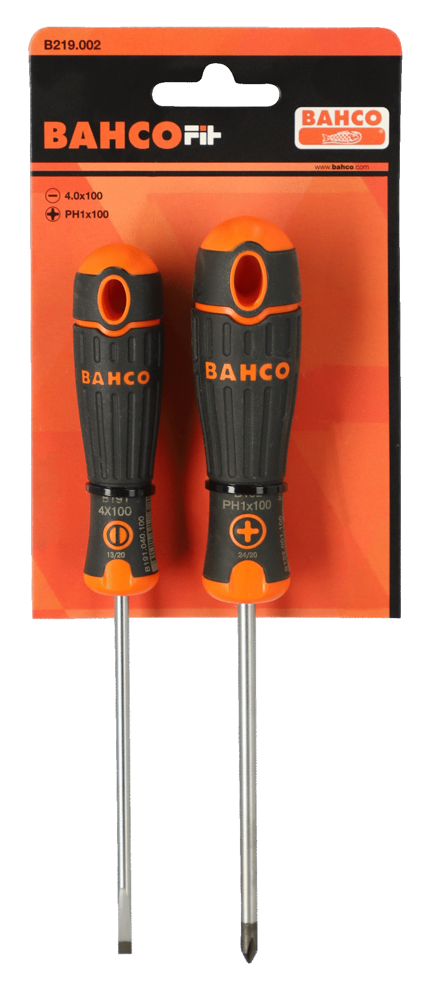 Wkrętaki BahcoFit śrub proste 4.0mm/Phillips PH1 zestaw 2 sztuk BAHCO