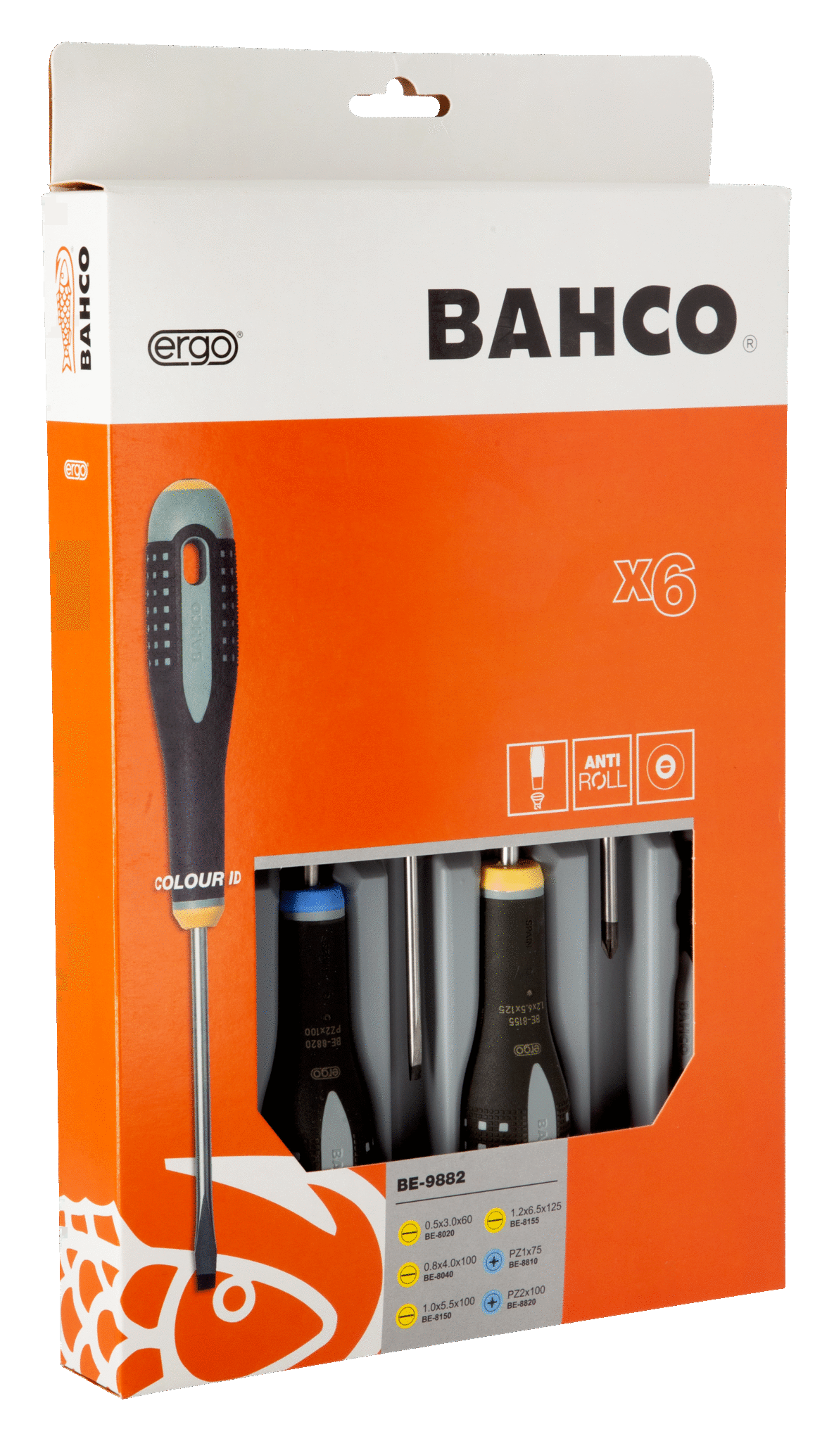 Wkrętaki ERGO™, zestaw 6 sztuk, płaskie i Pozidriv BAHCO