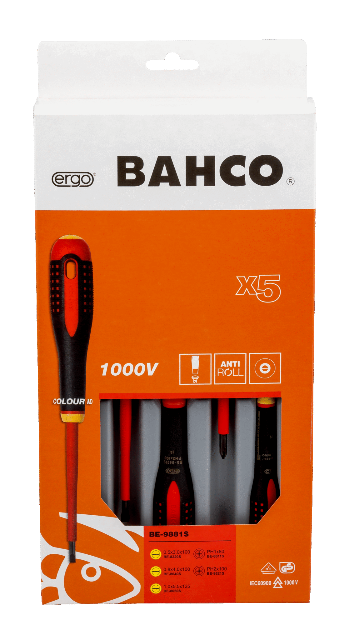 Wkrętaki izolowane ERGO™, zestaw 5 sztuk, płaskie 0.5/0.8/1, Phillips 1/2 BAHCO