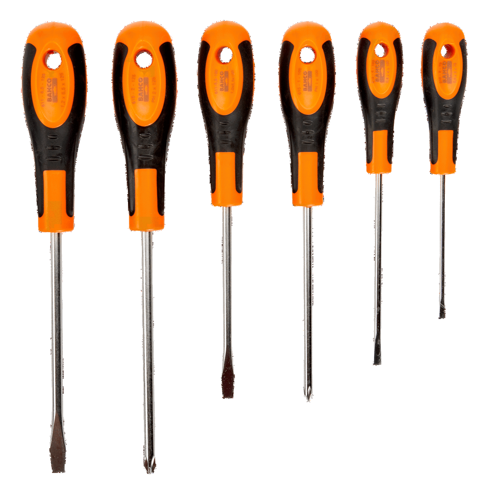 Wkrętaki serii 600, zestaw 6 sztuk, płaskie 3/4/5.5/6.5, PH 1/2 BAHCO