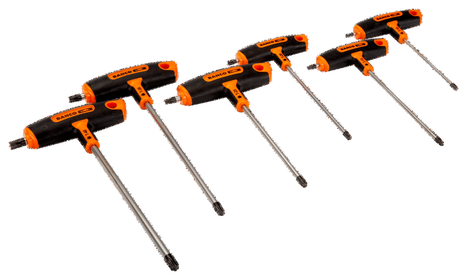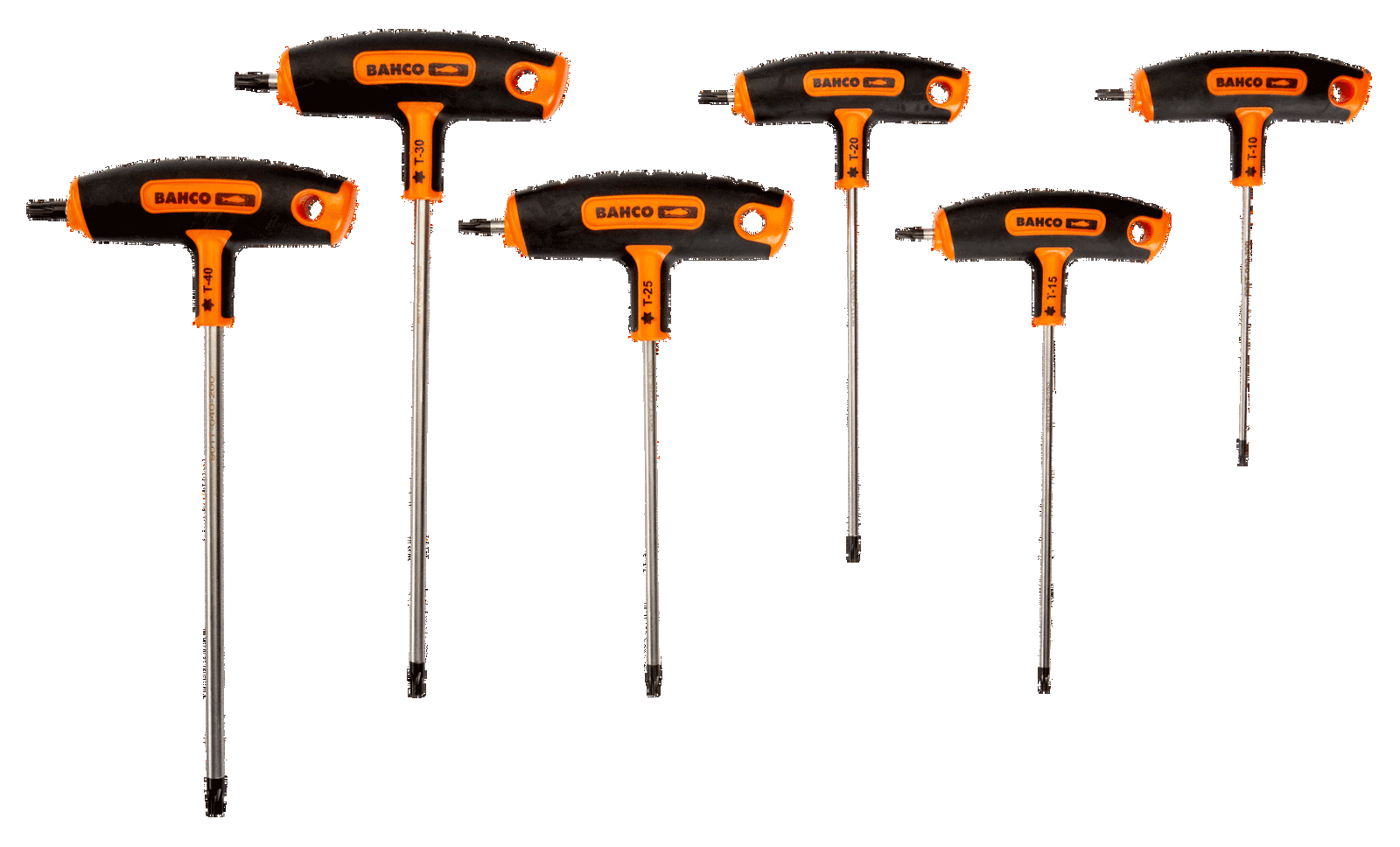 Wkrętaki trzpieniowe T-kształtne TORX zestaw 6 sztuk – wersje T-10, T-15, T-20, T-25, T-30, T-40 BAHCO