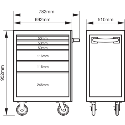 | Wymiary wózka | 952 x 510 x 782 mm |