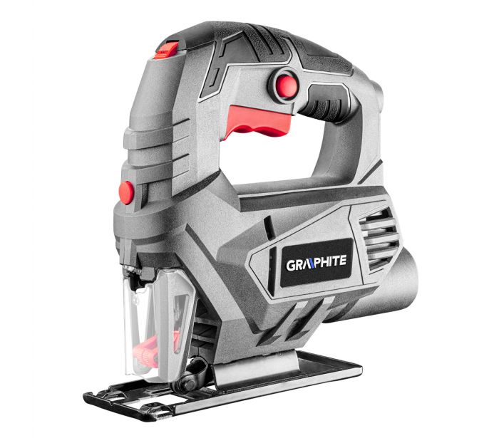 Wyrzynarka GRAPHITE 58G047 przeznaczona do precyzyjnego i szybkiego cięcia drewna i metalu o maksymalnej grubości odpowiednio drewno 55 mm i stal 6 mm.