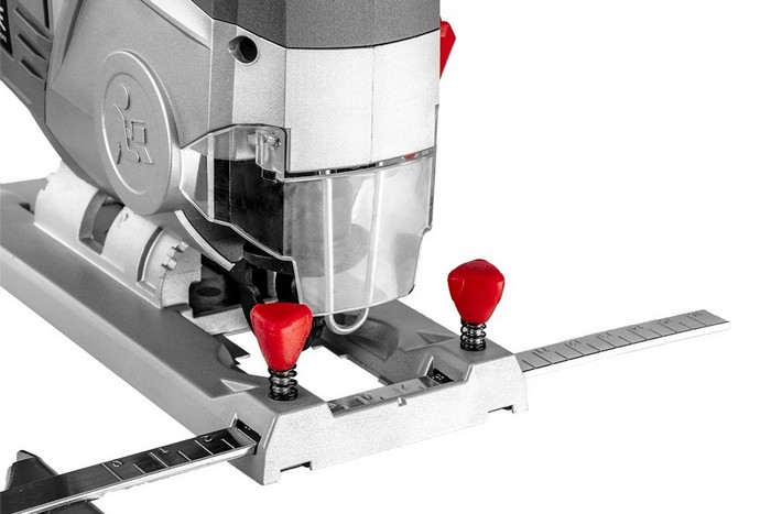 W zestawie z wyrzynarką znajduje się prowadnica równoległa.