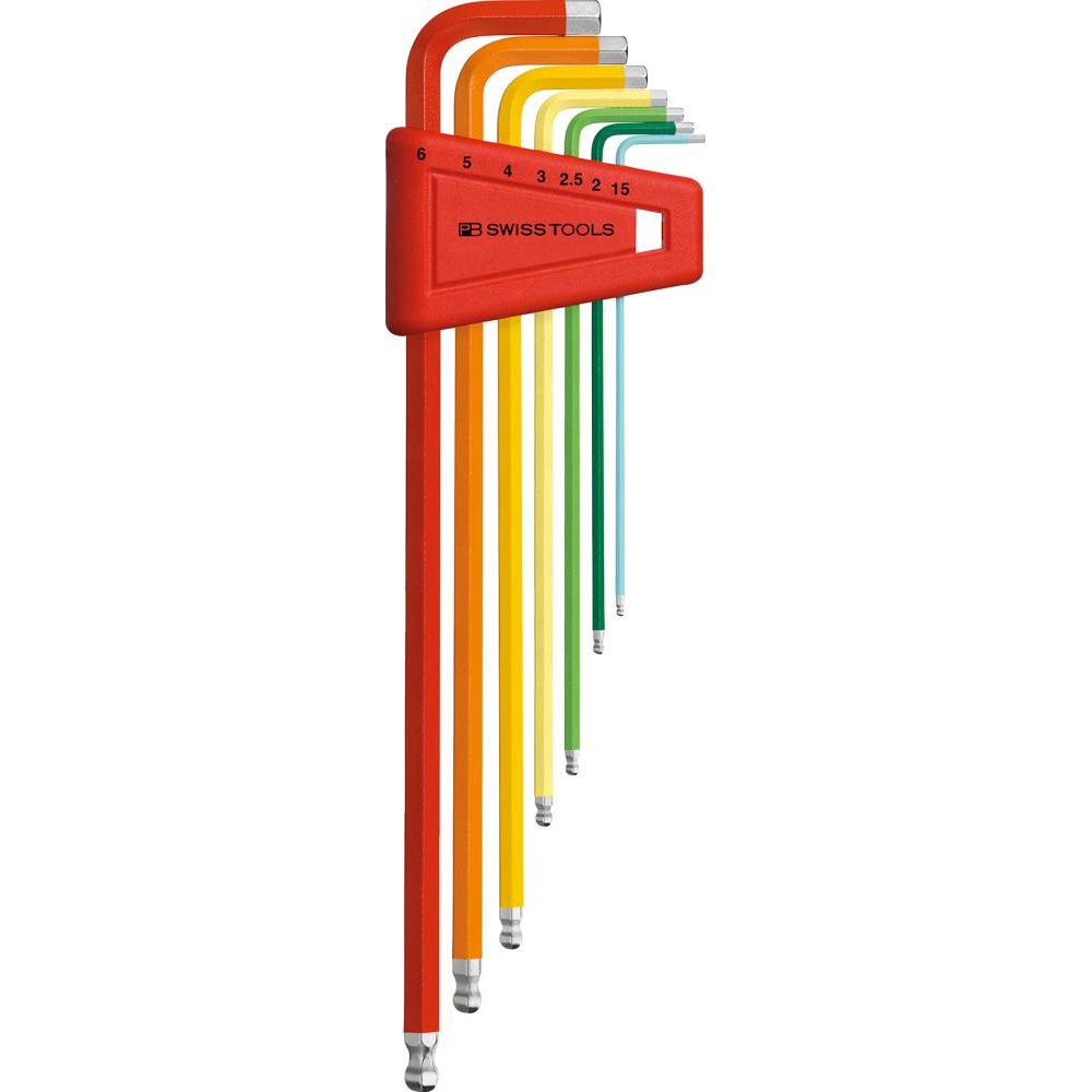 Zest.kluczy trzpien.kąt. w uchw.z tworz.sztuczn. 7-częśc.,1,5-6mm Rainbow końc.kulis.PB Swiss Tools