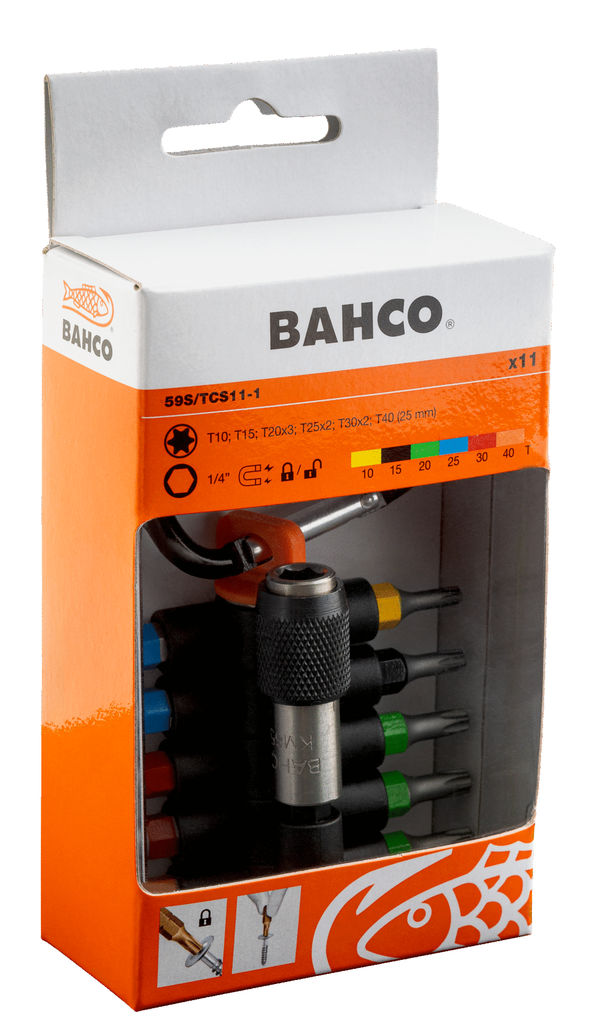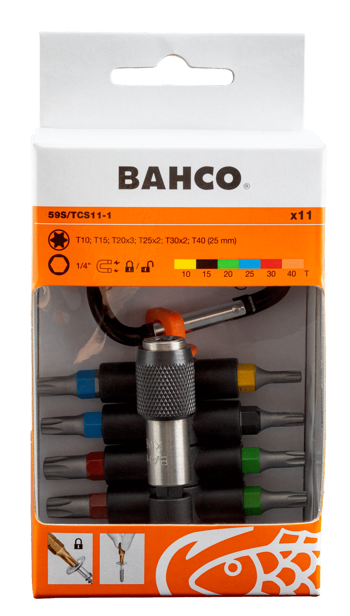 Zestaw 11-częściowy wierteł stożkowych TORX z magnetycznym uchwytem i zaczepem na pas BAHCO