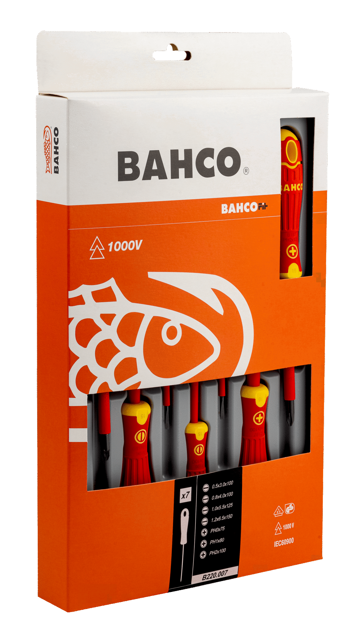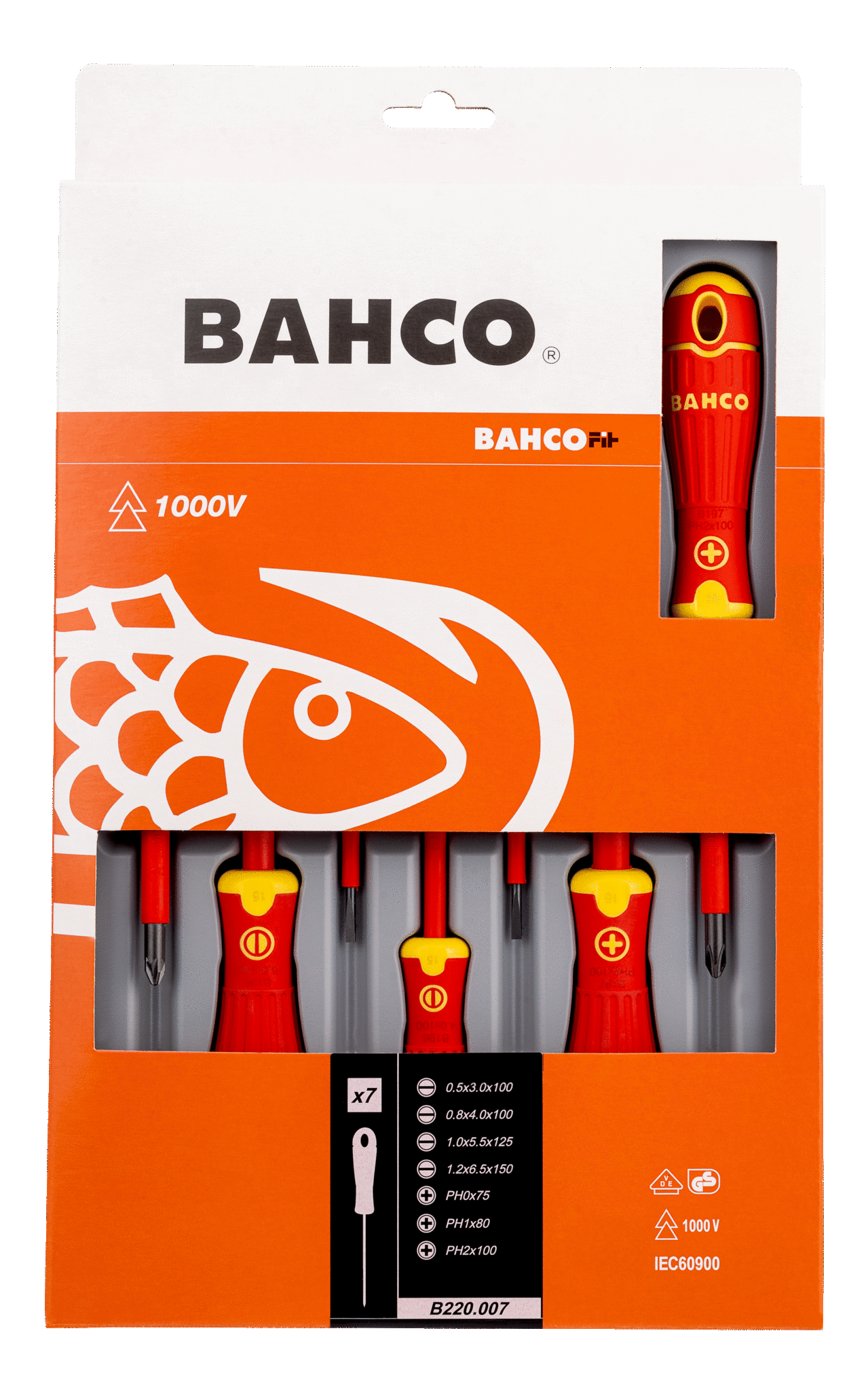 Zestaw 7 wkrętaków izolowanych BahcoFit do śrub płaskich i Phillips BAHCO