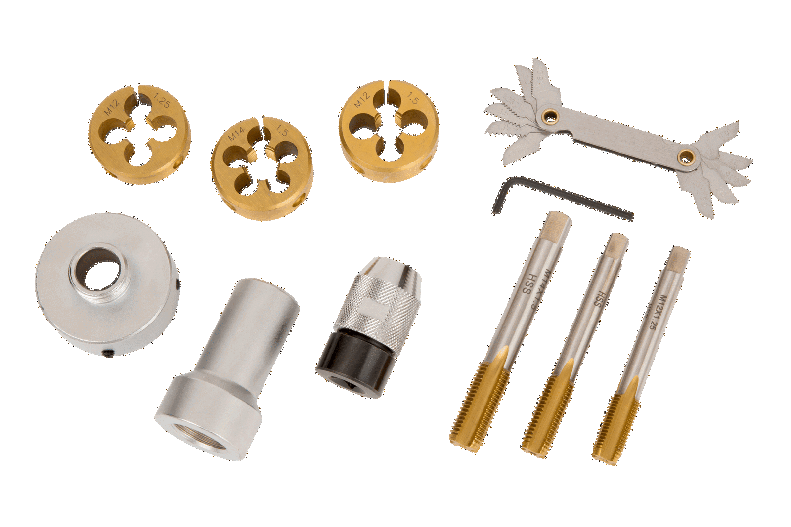 - Noże do najbardziej popularnych rozmiarów gwintów męskich i damskich. M12x1.25, M12x1.50 oraz M14x1.50