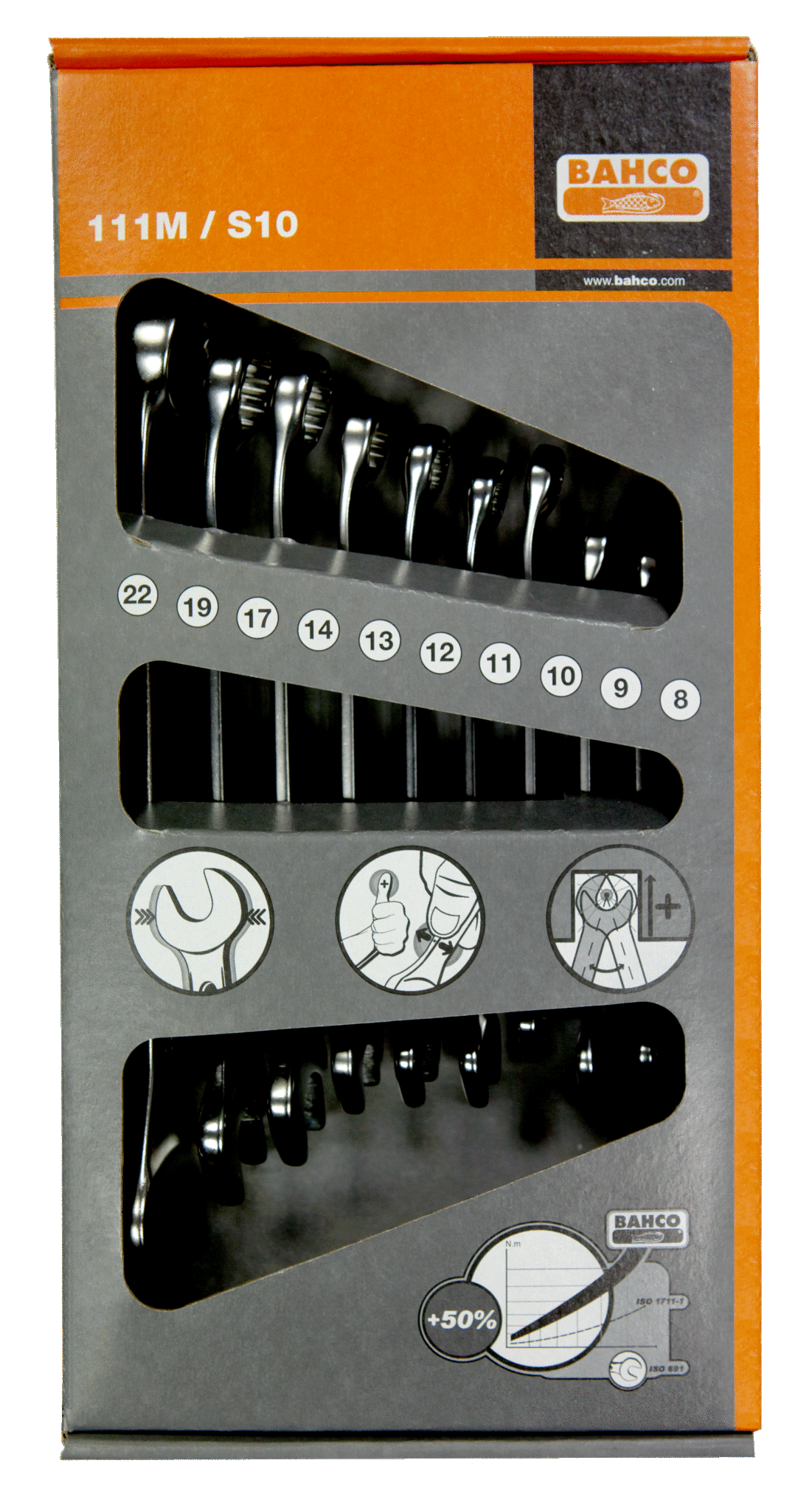 Zestaw kluczy płasko-oczkowych metrycznych 10 sztuk BAHCO