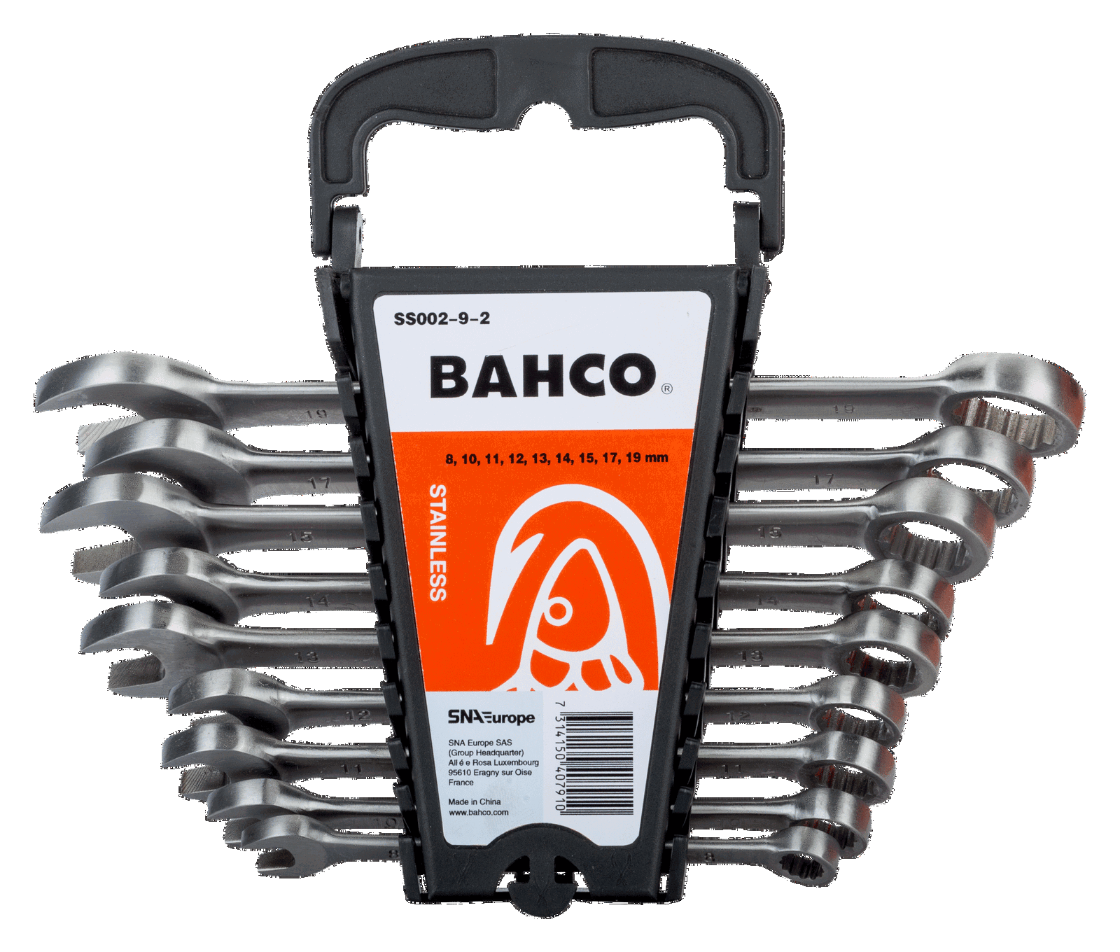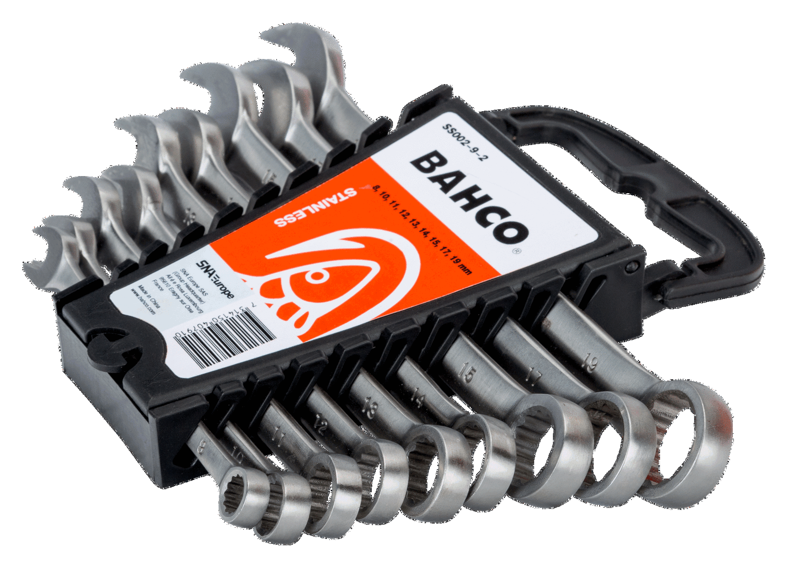 Zestaw kluczy płasko-oczkowych nierdzewnych, metryczne, 9 sztuk BAHCO