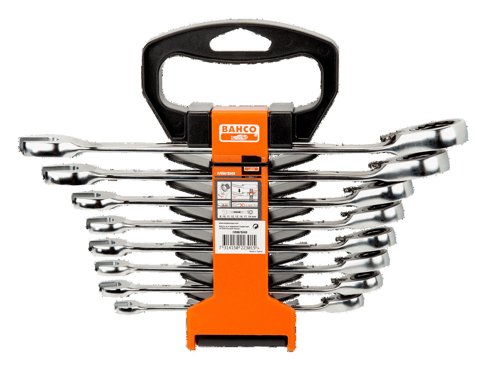 Zestaw kluczy płasko-oczkowych z grzechotką 8 szt. (zakres 8-19) BAHCO