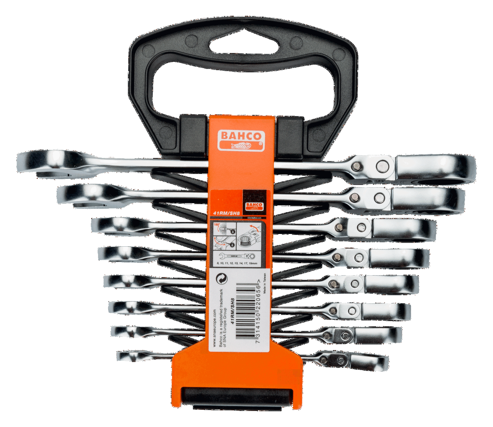 Zestaw kluczy płasko-oczkowych z uchylną grzechotką metrycznych BAHCO