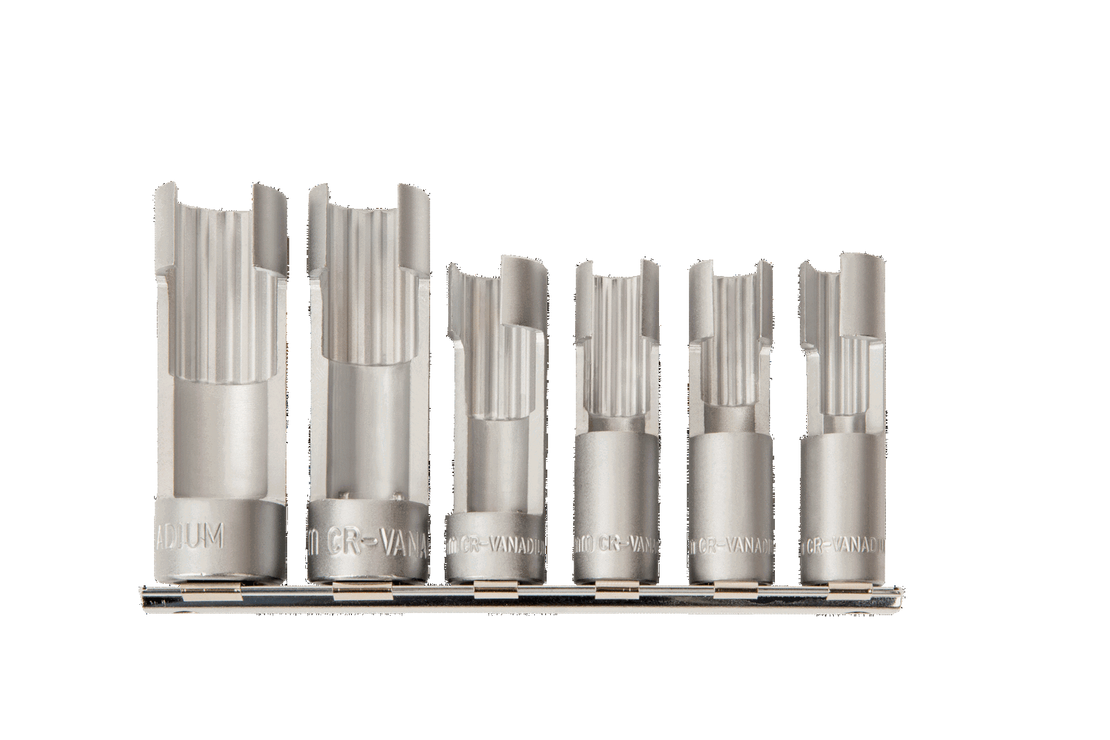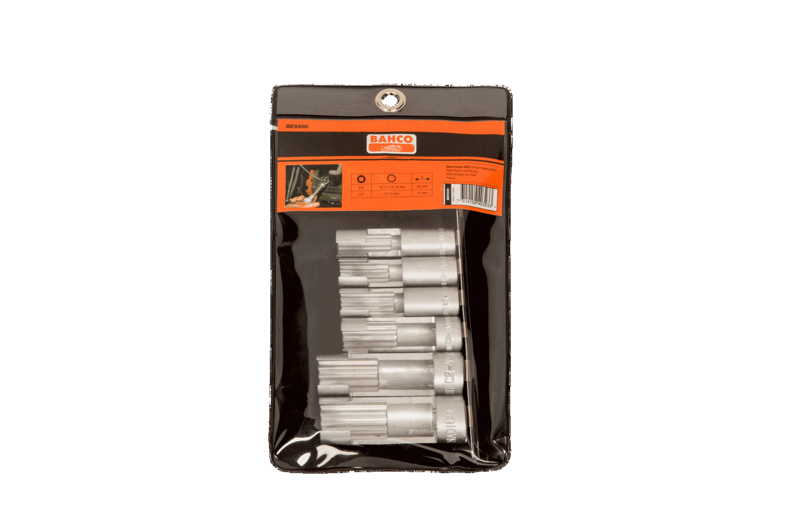 - Zestaw składa się z 6 nasadek o rozmiarach: 10, 11, 12, 14, 17 i 19 mm bihexagonal