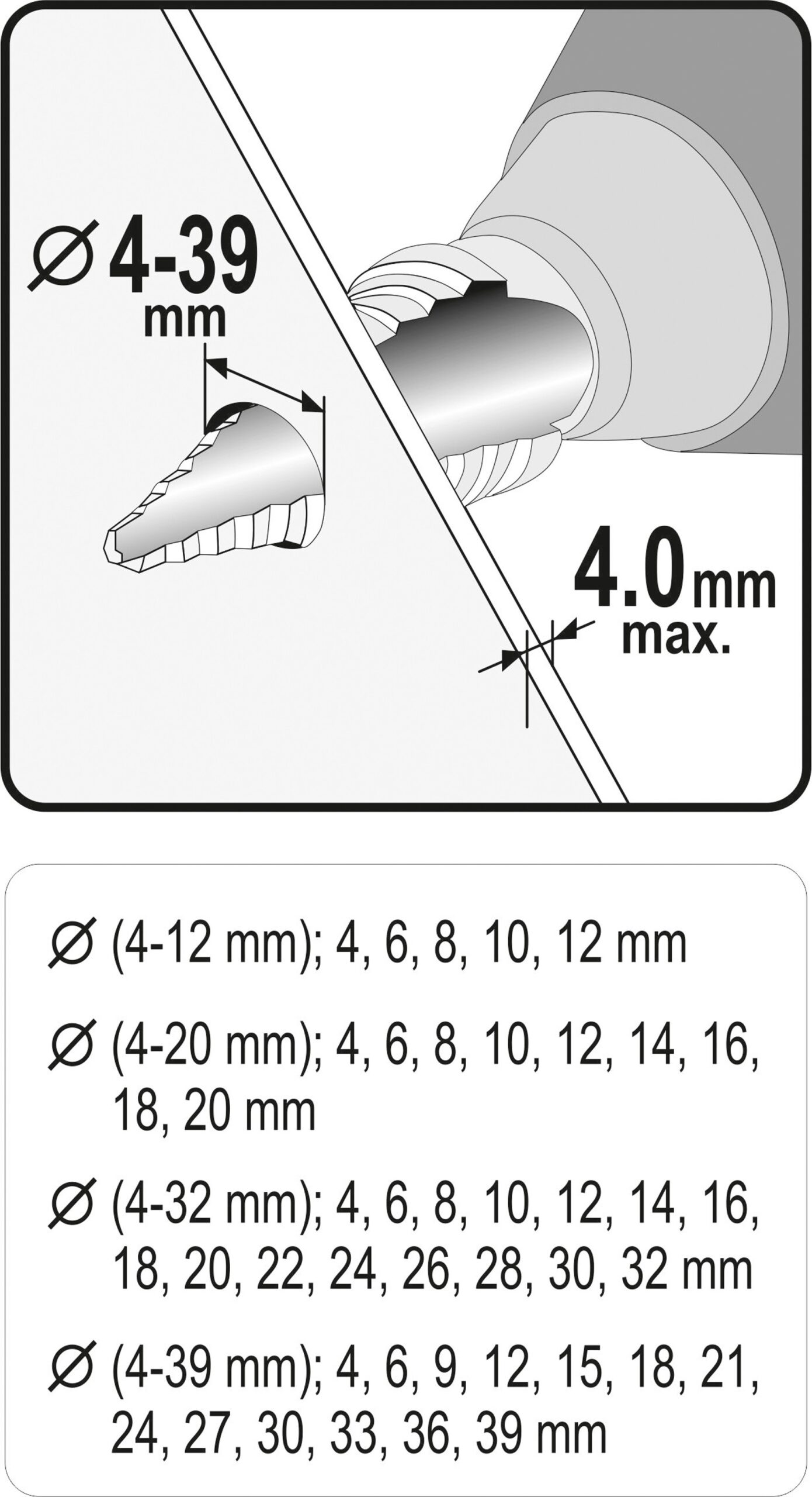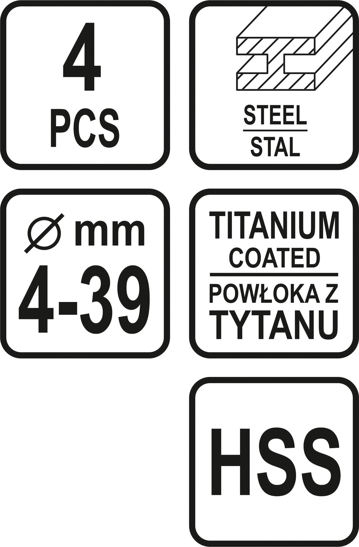 ZESTAW WIERTEŁ STOPNIOWYCH 4 SZT.