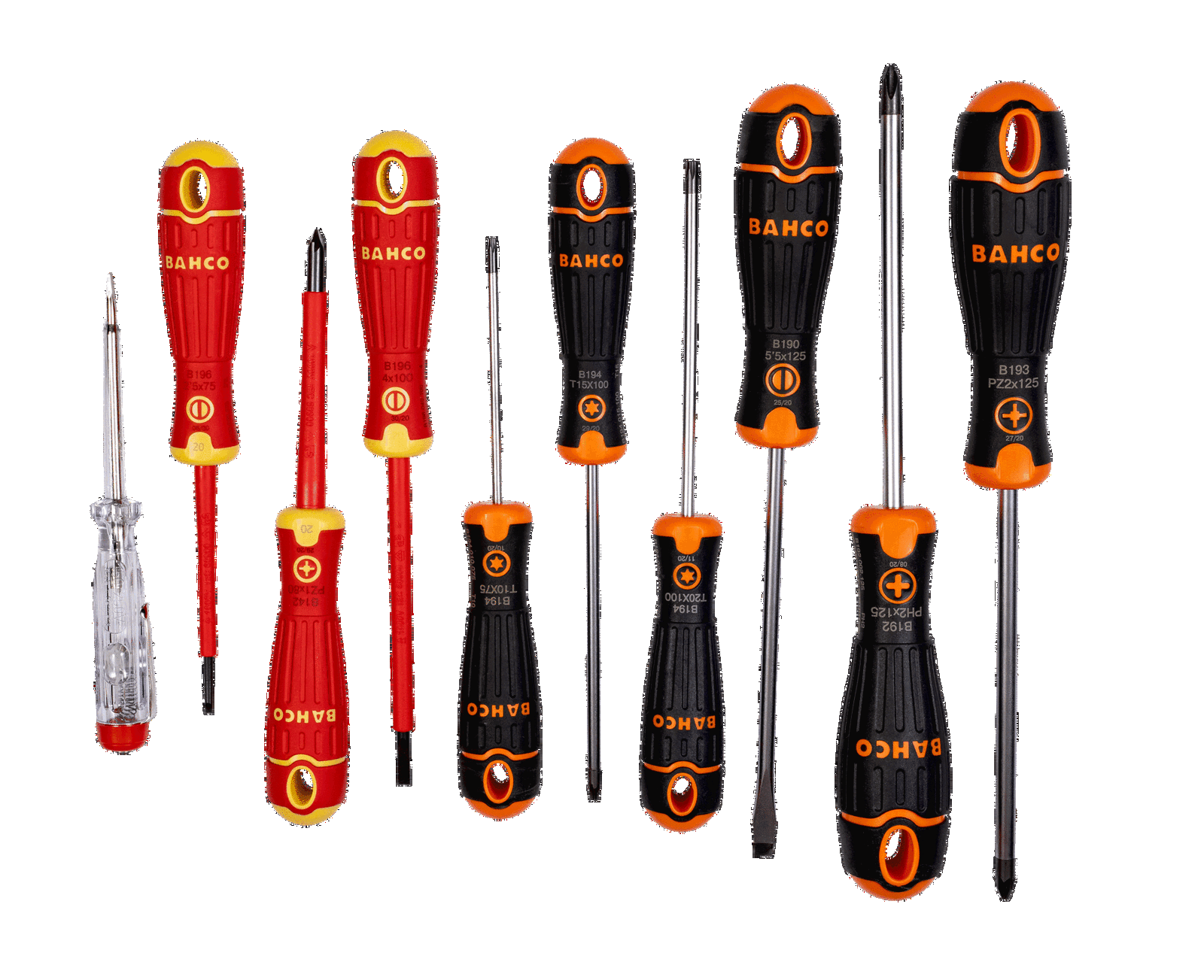 - Zestaw wkrętaków, 10 sztuk, do śrub płaskich, Phillips, Pozidriv oraz TORX® (zawiera próbnik napięcia 150-250V)