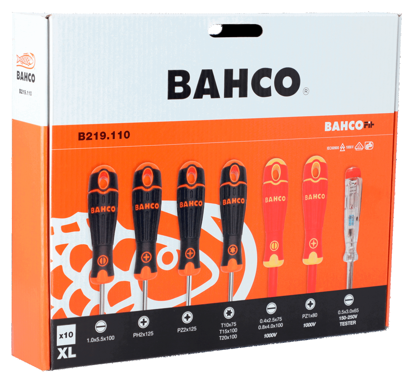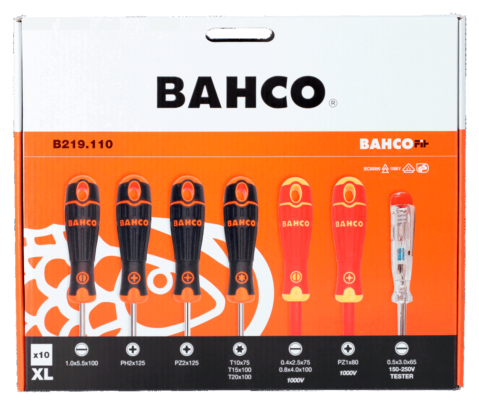 Zestaw wkrętaków BahcoFit Płaski/Phillips/Pozidriv/TORX® 10 sztuk z gumowym uchwytem BAHCO