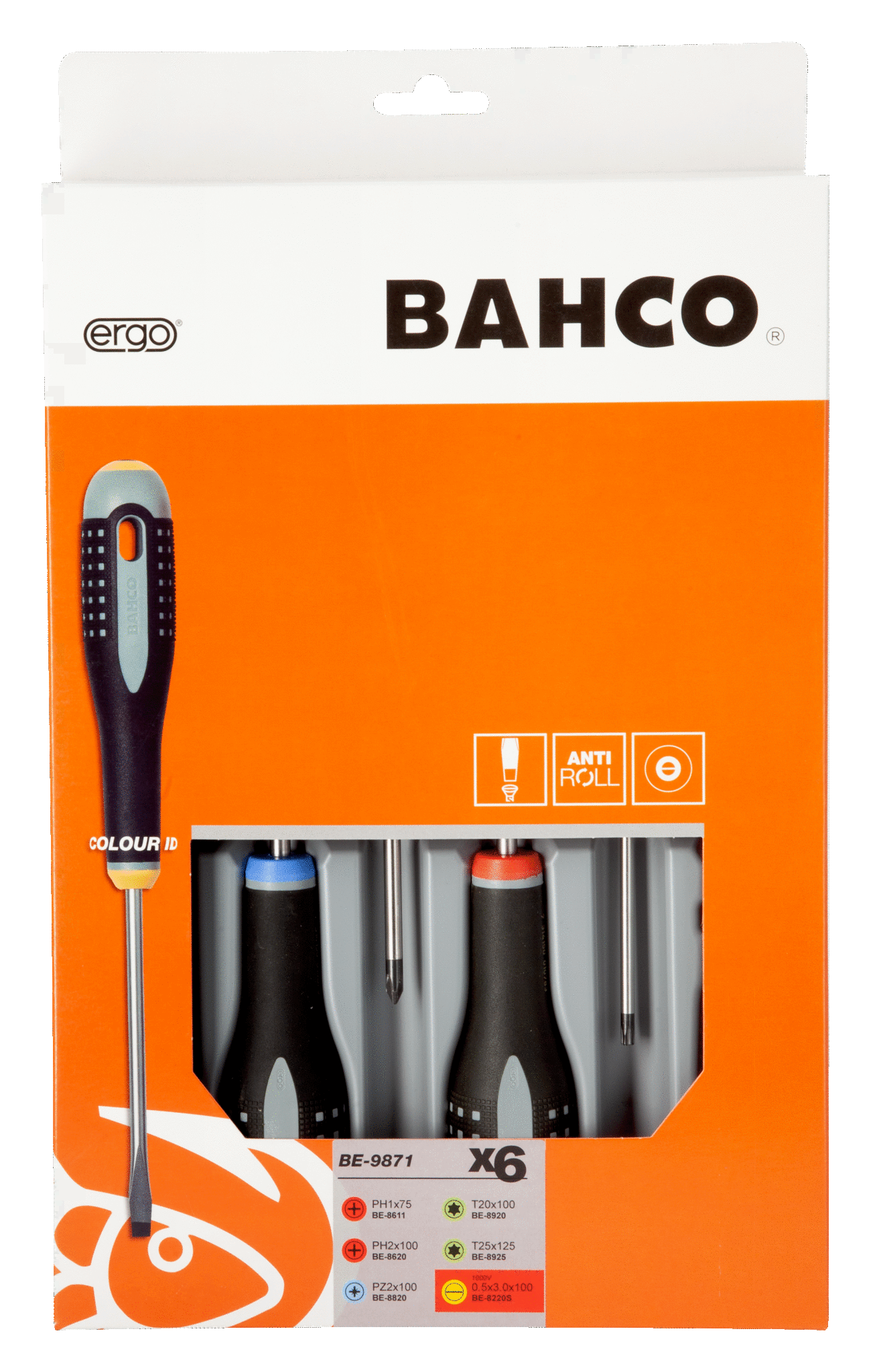 Zestaw wkrętaków ERGO, 6 elementów, śruby proste, Phillips, Pozidriv, Torx BAHCO